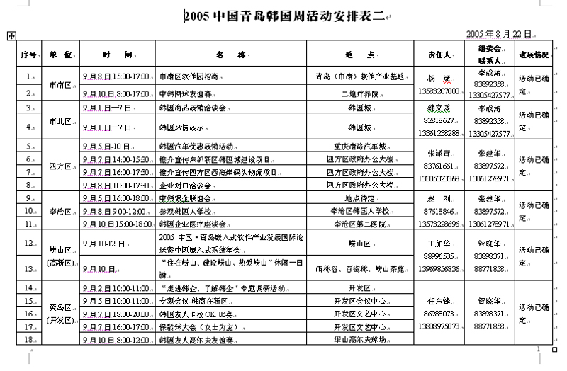 2005中国青岛韩国周活动安排表二