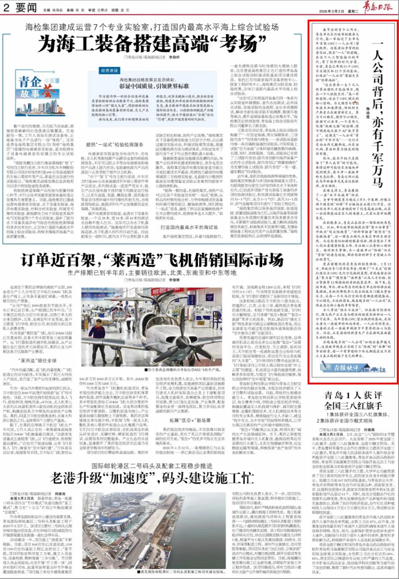 春节后的首个工作日,青岛市北区政务服务中心内,高一军接过了全市马年首张OPC(一人公司)营业执照。这张看似寻常的纸质凭证,因其“一人”的前缀,在这个人工智能勃兴的年代,有了别样的时代分量。目前,青岛已布局15个OPC专业园区和12个实训基地,打造出“一人公司”蓬勃生长的“热带雨林”。