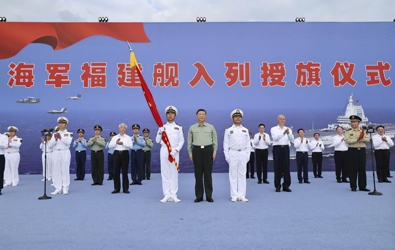 我国第一艘电磁弹射型航空母舰入列 习近平出席入列授旗...