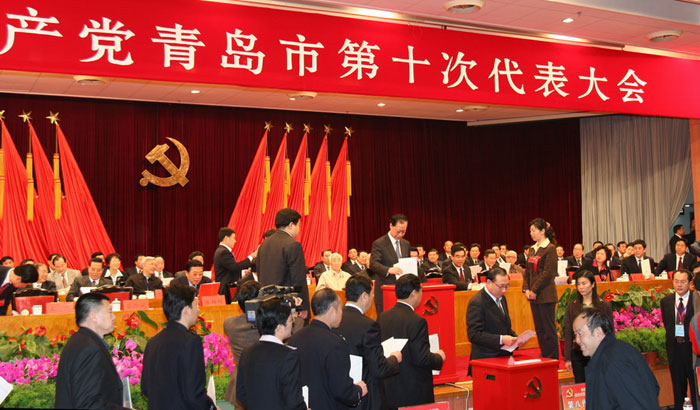上午9时,阎启俊同志宣布大会开始。在总监票人和监票人的监督下,到会的587名代表以无记名投票的方式选举出由59名委员、11名候补委员组成的中共青岛市第十届委员会,选举出中共青岛市纪律检查委员会委员45名,选出青岛市出席省九次党代会代表71名。当选举结果宣布后,全场响起热烈的掌声。