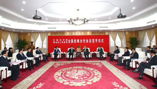 青岛市委副书记、市长夏耕和中国科学院副院长施尔畏分别代表青岛市和中国科学院签署了全面战略合作协议。青岛市委常委、副市长张惠,青岛市政协副主席、市发改委主任刘明君,青岛市科技局、崂山区、财政局、高新区等有关部门及中国科学院各院所单位主要领导参加了签字仪式。