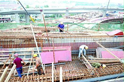 三座立交桥中,重庆路立交施工难度最大,为五层全定向互通立交,高度约40米,相当于12层楼高。张修亭告诉记者,已经通车的主线为重庆路立交的第五层,往下四层分别为重庆路跨线桥-跨海大桥高架路匝道、跨海大桥高架路-重庆路跨线桥匝道、重庆路跨线桥和现状重庆路。由于5层工程在同一个工作面上,不能同时展开施工,项目部决定按照5-4-2-3的顺序进行,10月份将开始第四层立交钢箱梁的吊装,将于50天内完成。