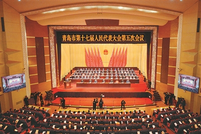 1月20日上午,青岛市第十七届人民代表大会第五次会议在市人民会堂隆重开幕。 于 滈 摄
