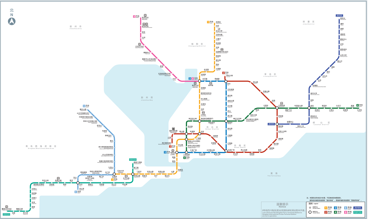 青岛地铁已开通运营线路8条,共设运营车站169座(换乘站不重复计入),其中青岛地铁1号线(含7号线一期),共设运营车站41座;青岛地铁2号线一期,共设运营车站22座;青岛地铁3号线,共设运营车站22座;青岛地铁4号线,共设运营车站25座;青岛地铁6号线一期,共设运营车站21座;青岛地铁8号线北段,共设运营车站11座;蓝谷快线,共设运营车站21座;西海岸快线,共设运营车站23座(青岛地铁线网图见下图)。