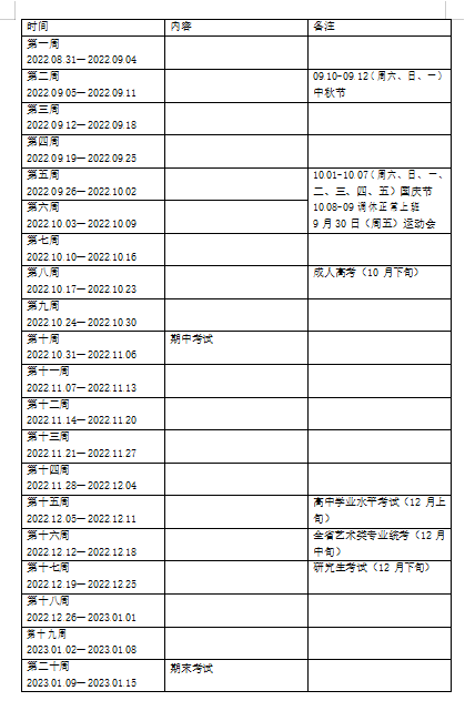 青岛二中 2022—2023 学年度第一学期教学安排