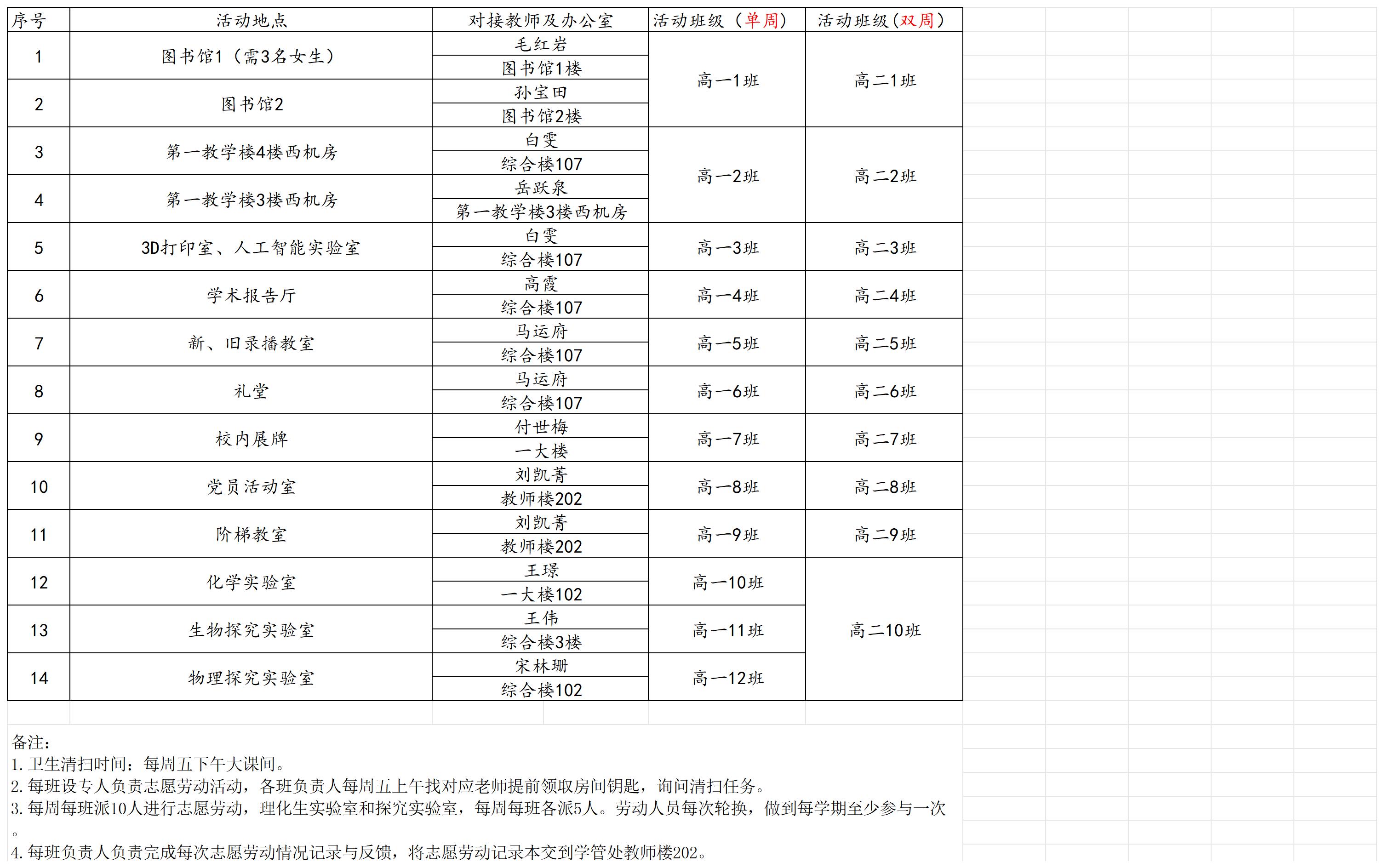 山东省青岛第六十六中学2023-2024学年度学生劳动教育安排