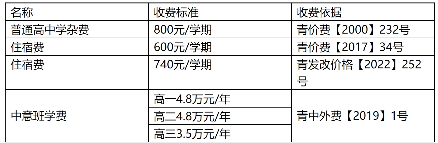 山东省青岛第六中学2022年9月关于学杂费、住宿费、中意班学费收费标准的公示