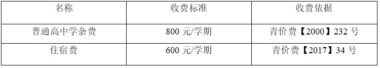 山东省青岛第六中学2021年3月关于学杂费、住宿费、中意班学费收费标准的公示