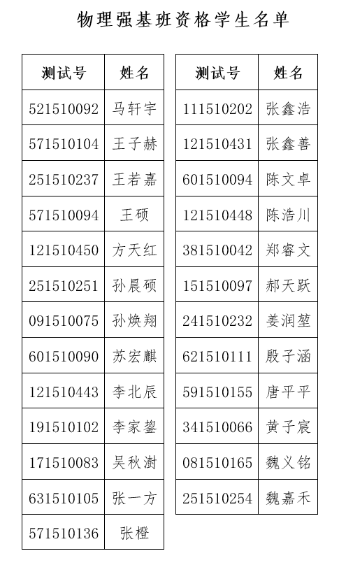 物理强基班资格学生名单
