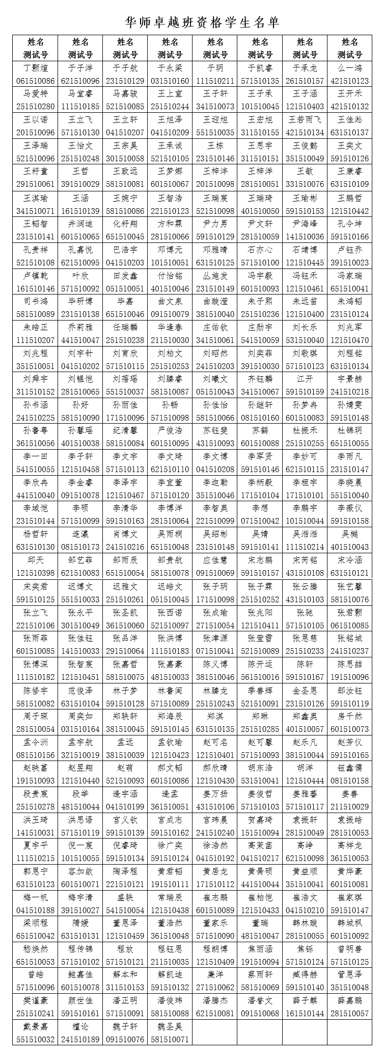 华师卓越班资格学生名单