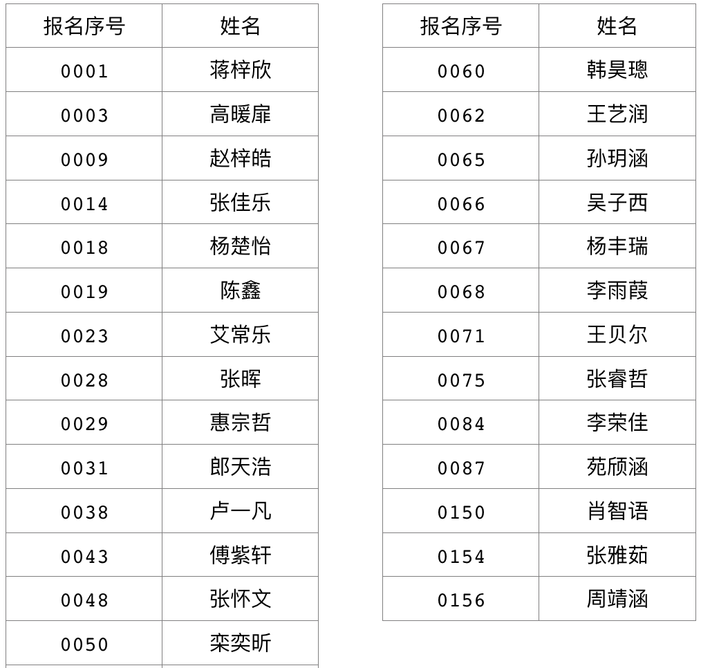 根据《青岛市教育局普通中学体育艺术特长生特长班招生办法(试行)的通知》的要求,按照《青岛市实验高级中学2022年体育艺术特长生、足球后备人才招生简章》,学校对符合报名条件的特长生进行了综合素养测试和专业测试,经学校招生工作领导小组研究,现将获得拟录取资格学生名单公示如下(按报名序号排序):
