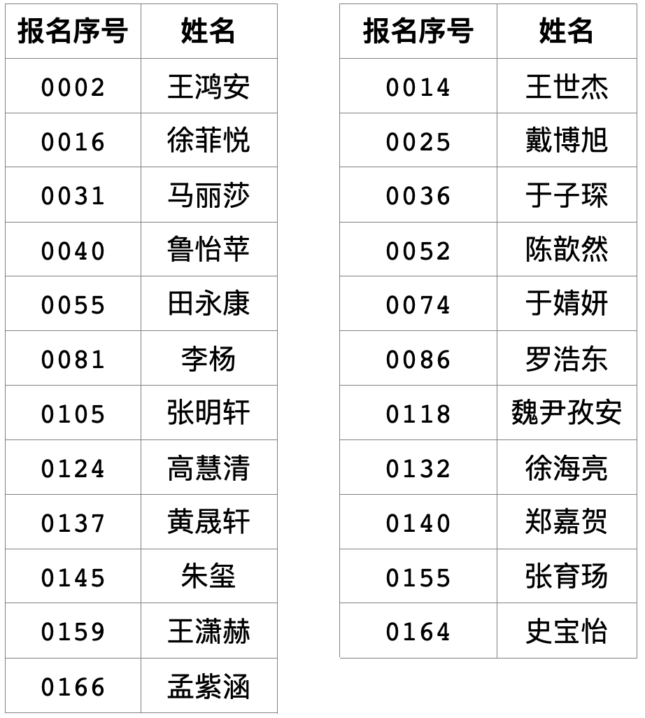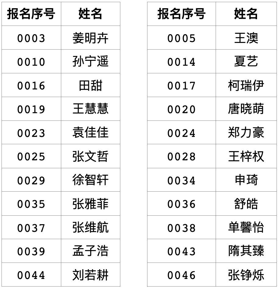 根据省、市有关招生工作意见和《关于进一步规范直属学校体育艺术特长生招生工作的指导意见》《关于进一步规范直属学校足球后备人才招生工作的指导意见》等文件要求,按照《青岛市实验高级中学2023年体育艺术特长生、足球后备人才招生简章》,学校对符合报名条件的特长生进行了综合素养测试和专业测试,经学校招生工作领导小组研究,现将获得拟录取资格学生名单公示如下(按报名序号排序):