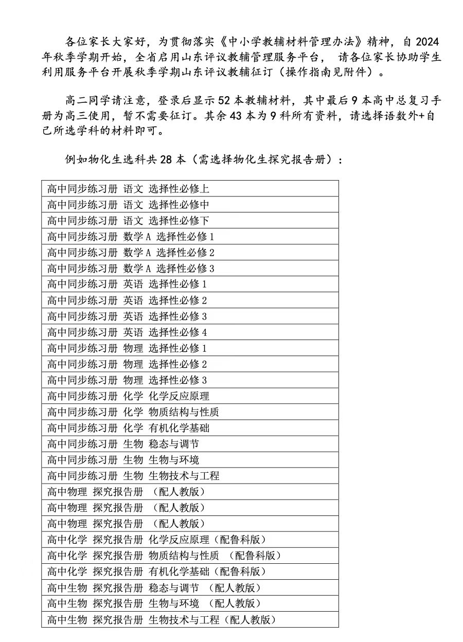 青岛一中教材教辅信息(2024.9)