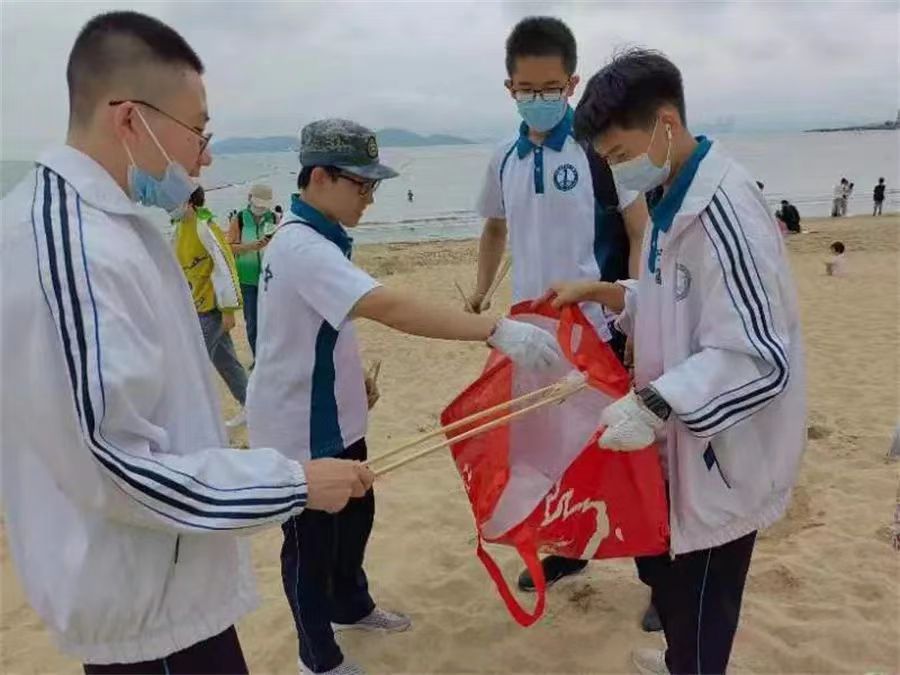4. 通过社会实践、志愿服务、校内值周等服务性活动,培养劳动服务意识和劳动自主意识。青岛一中积极利用家校合作与校际合作等多种社会资源,借助课外实践的方式鼓励学生在课余积极参与社会劳动实践。学校积极组织和开展志愿服务活动,建立学校志愿服务队,节假日海边环境服务队等,很好的锻炼了学生服务社会、服务他人的意识和劳动情怀。
