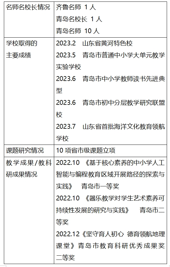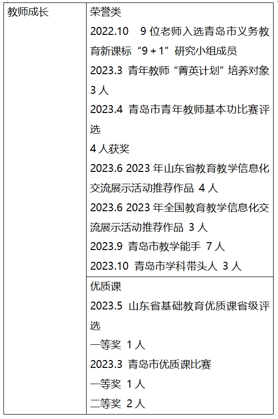 2022-2023学年青岛实验初中教师教学成果情况统计