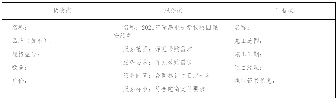 二、项目名称:2021年青岛电子学校校园保安服务项目