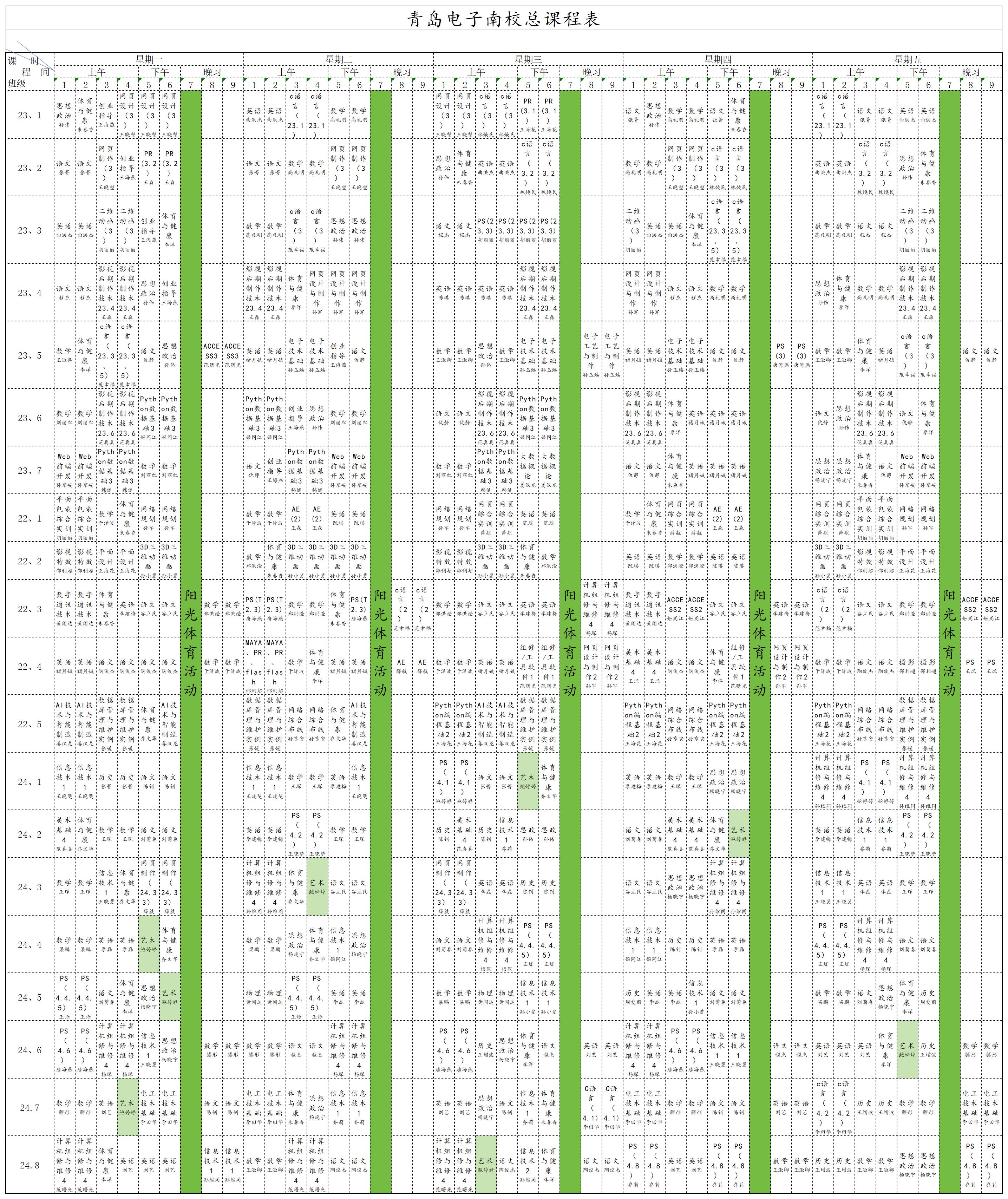 青岛电子学校 2024-2025学年第一学期总课表(市南校区)