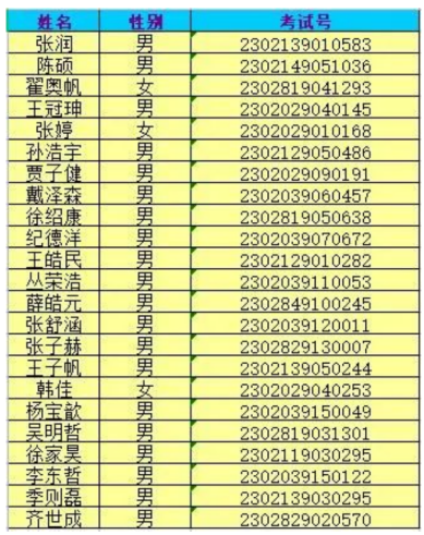 祝贺以下同学考入青岛电子学校。请被录取的同学于7月26日(周三)上午9:00到市北校区(市北区台东一路118号)报到并领取录取通知书,报到详情见本公众号发布的《青岛电子学校2023级报到须知(职普融通、三二连读五年贯通和职业中专)》。