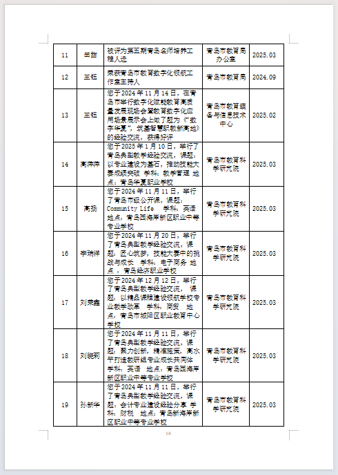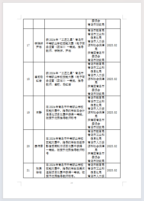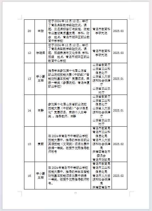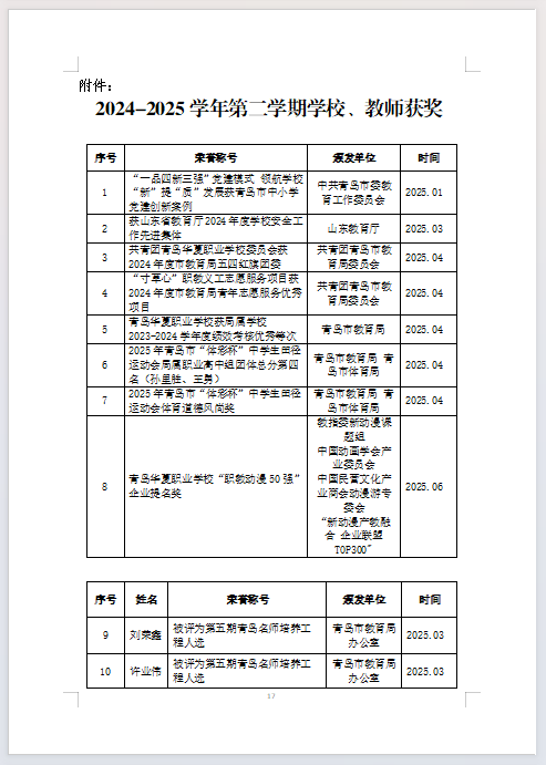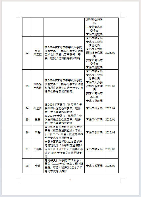 青岛华夏职业学校2024-2025学年第二学期学校、教师获奖