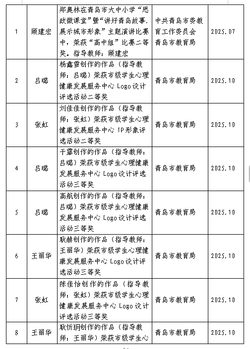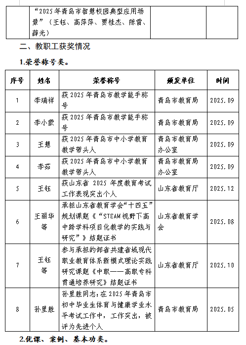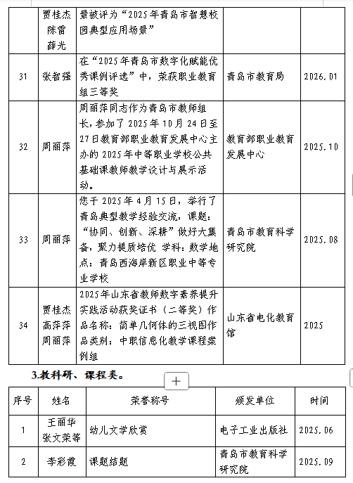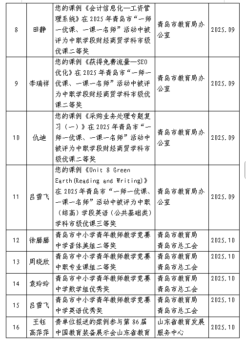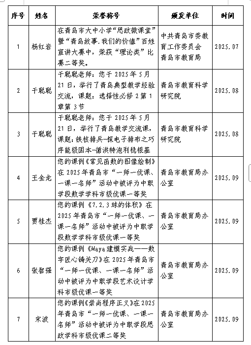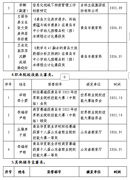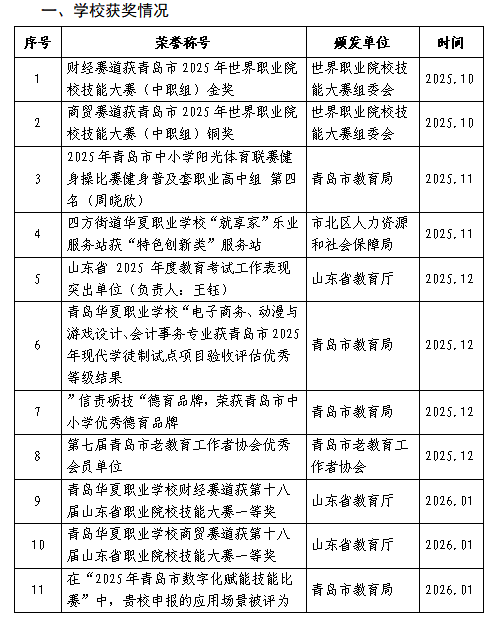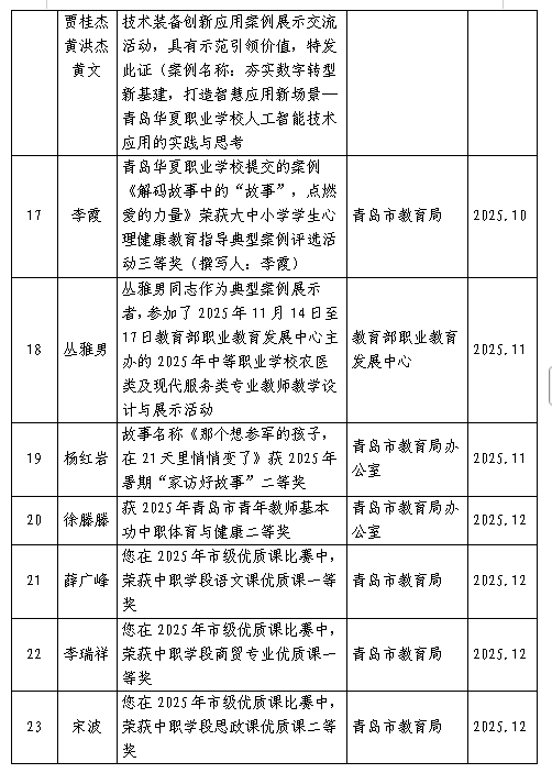 青岛华夏职业学校2025-2026学年第一学期学校、教师获奖