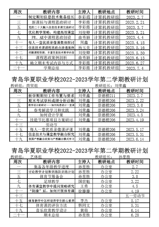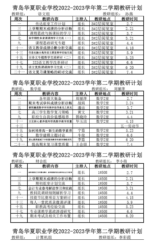 青岛华夏职业学校2022-2023学年第二学期教研活动