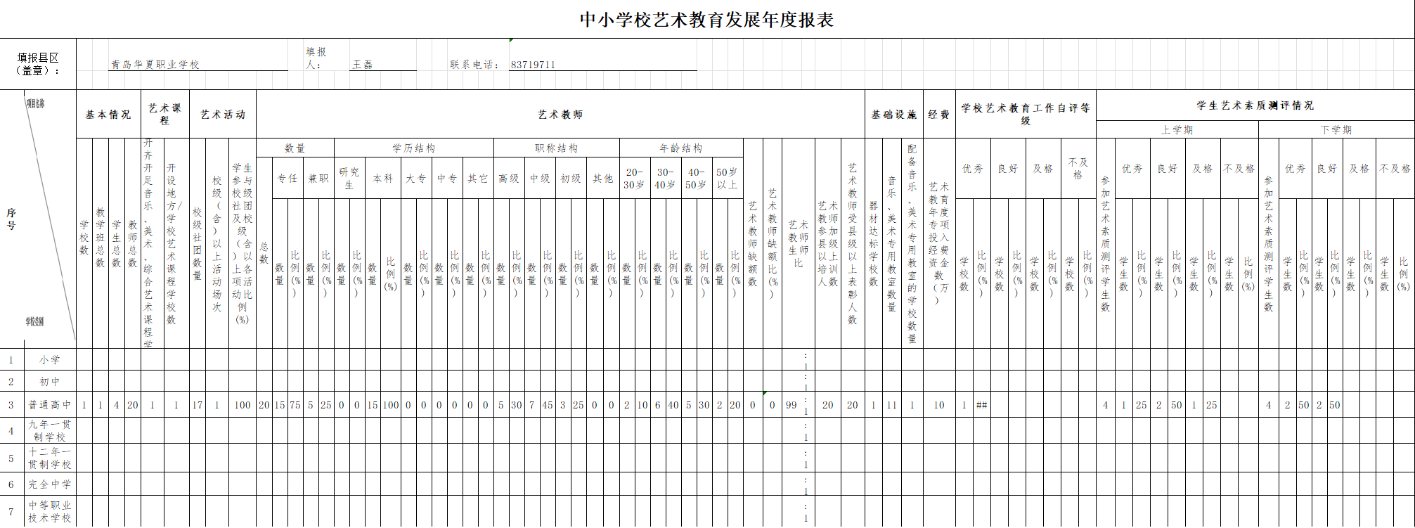 青岛华夏职业学校2022-2023学年度第二学期中小学校艺术教育发展年度报表