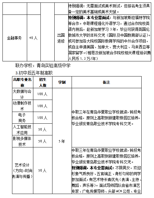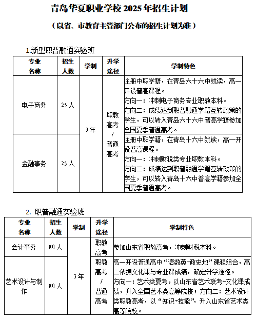 青岛华夏职业学校2025年招生计划