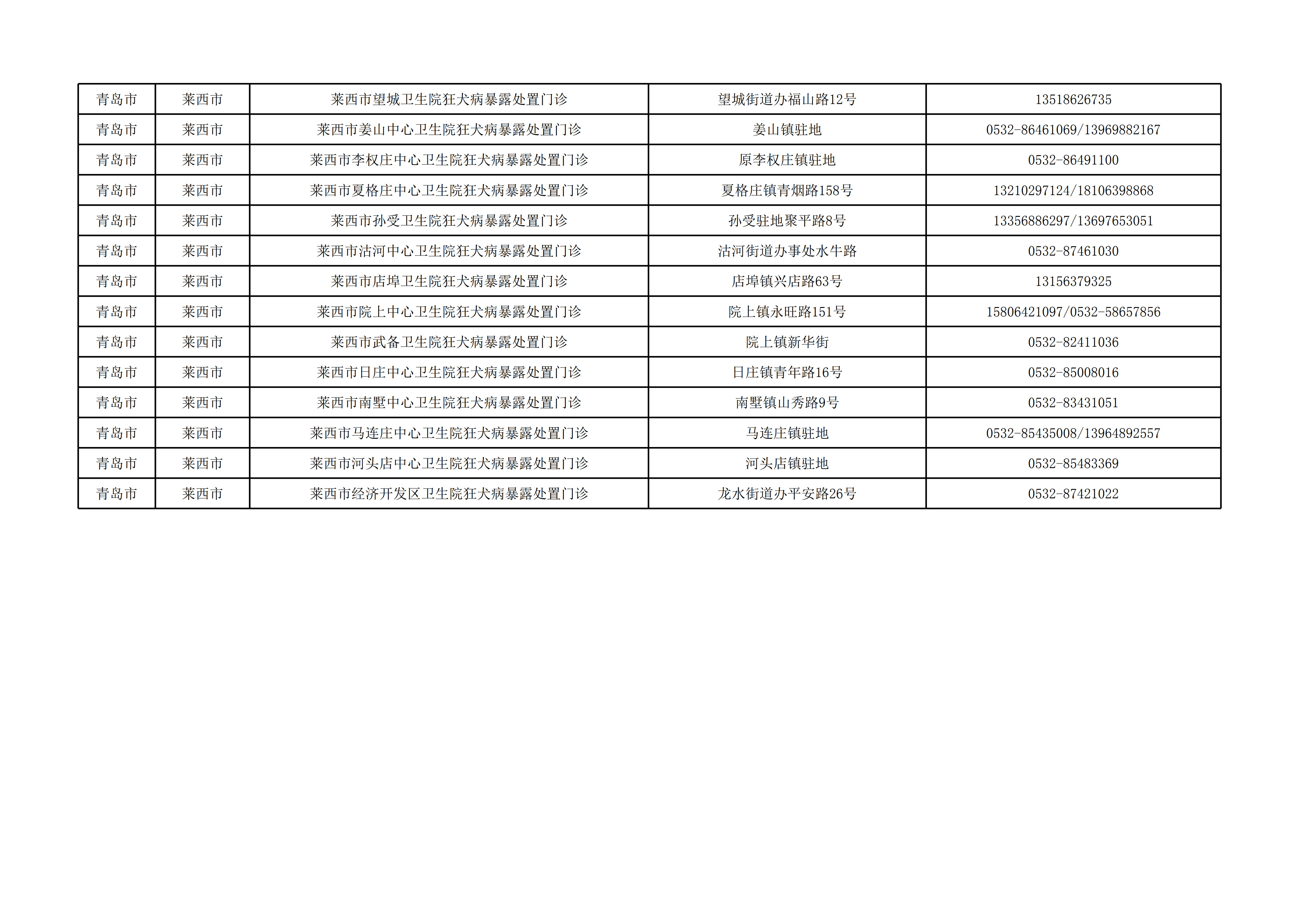 青岛市狂犬病暴露处置门诊信息