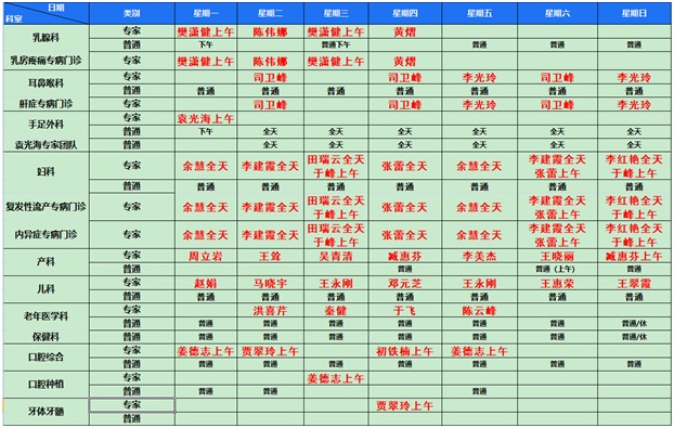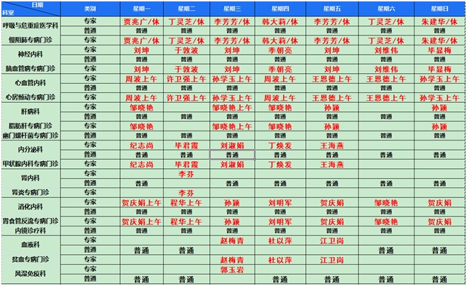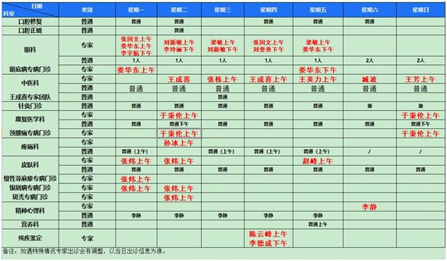 青岛市第八人民医院本部2024年9月份医师出诊表