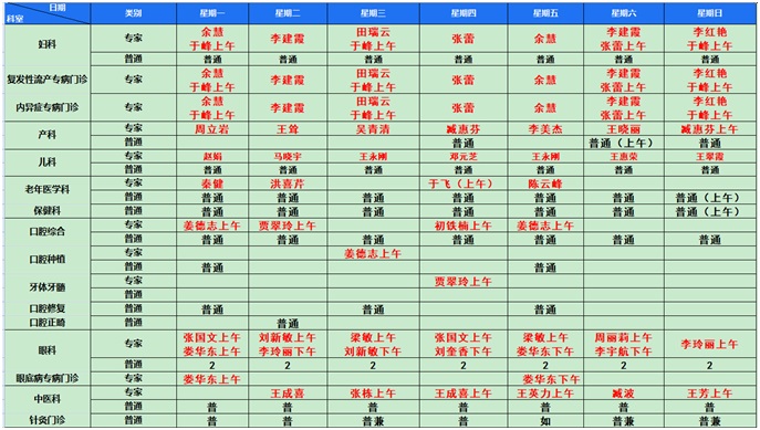 青岛市第八人民医院本部2024年8月份医师出诊表
