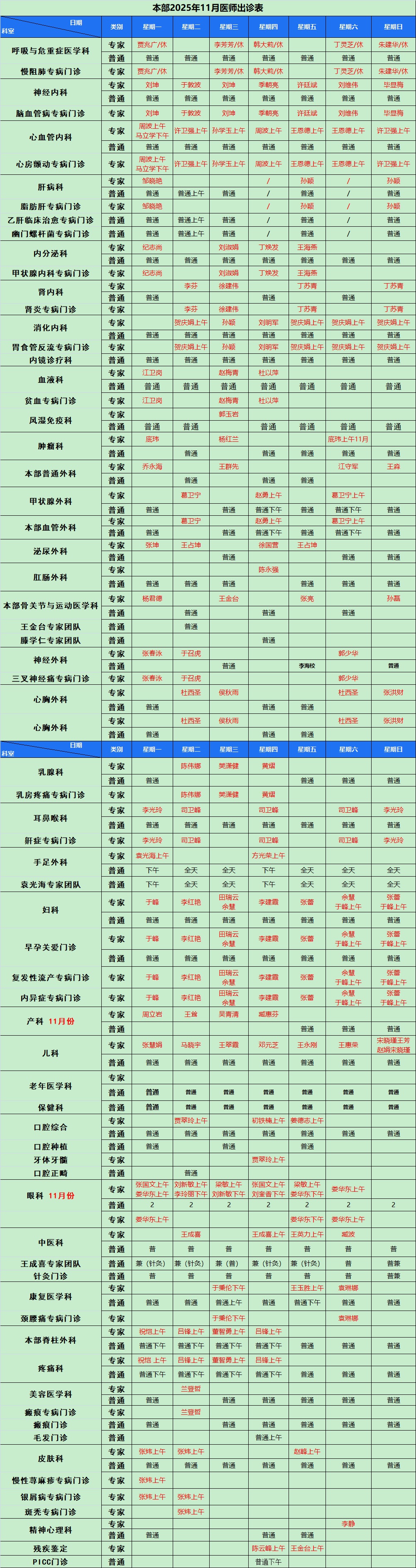 青岛市第八人民医院本部2025年11月份医师出诊表