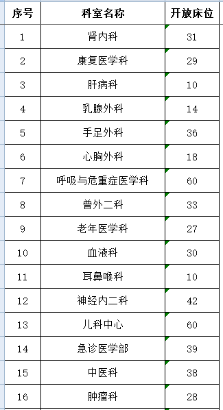 青岛市第八人民医院科室床位