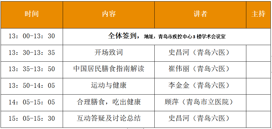 为进一步普及健康知识,传播健康理念,增强职工的疾病预防意识,提高职工的自我保健能力,青岛市第六人民医院肝病科特邀请青岛市立医院东院营养科科主任、注册营养师顾萍教授来我院进行健康知识讲座,请临床医疗医护医技人员积极参加(要求各临床医疗医技科室参会人数不少于4人/科,业务职能科室参会人数不少于1人/科),现就有关事项通知如下: