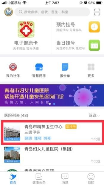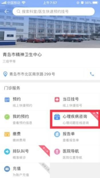 2.点击“青岛市精神卫生中心”,选择“心理疾病咨询”