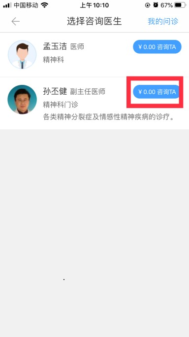 3.选择咨询医生,点击“咨询 TA”,开始咨询