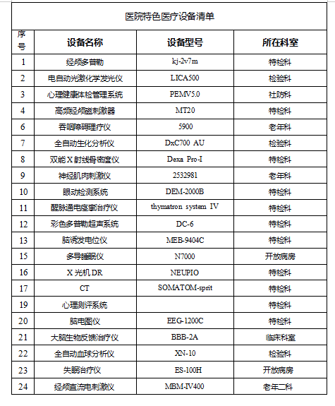 青岛市精神卫生中心医院特色医疗设备清单
