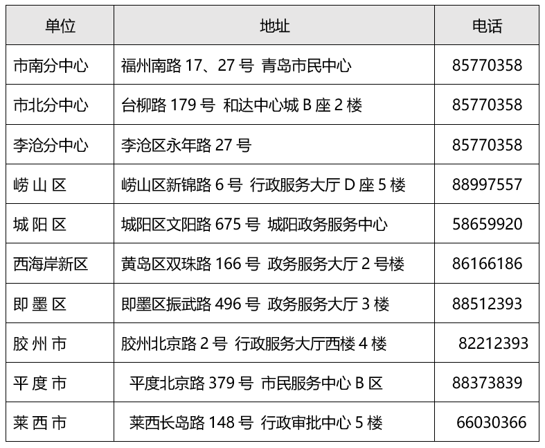 各区(市)医保经办机构服务大厅地址