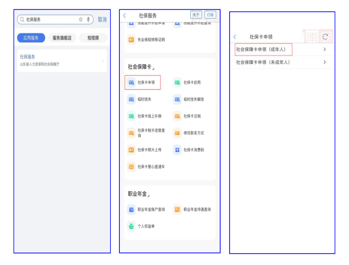 方式三:个人通过“爱山东”APP申领社保卡