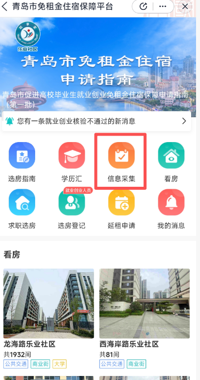 1.求职的申请人提交申请后,申报信息通过平台进行自动核验。核验不通过的,申请人需按平台提示补充相关证明材料。审核通过的,平台自动分配房间并向申请人发送租住通知短信。