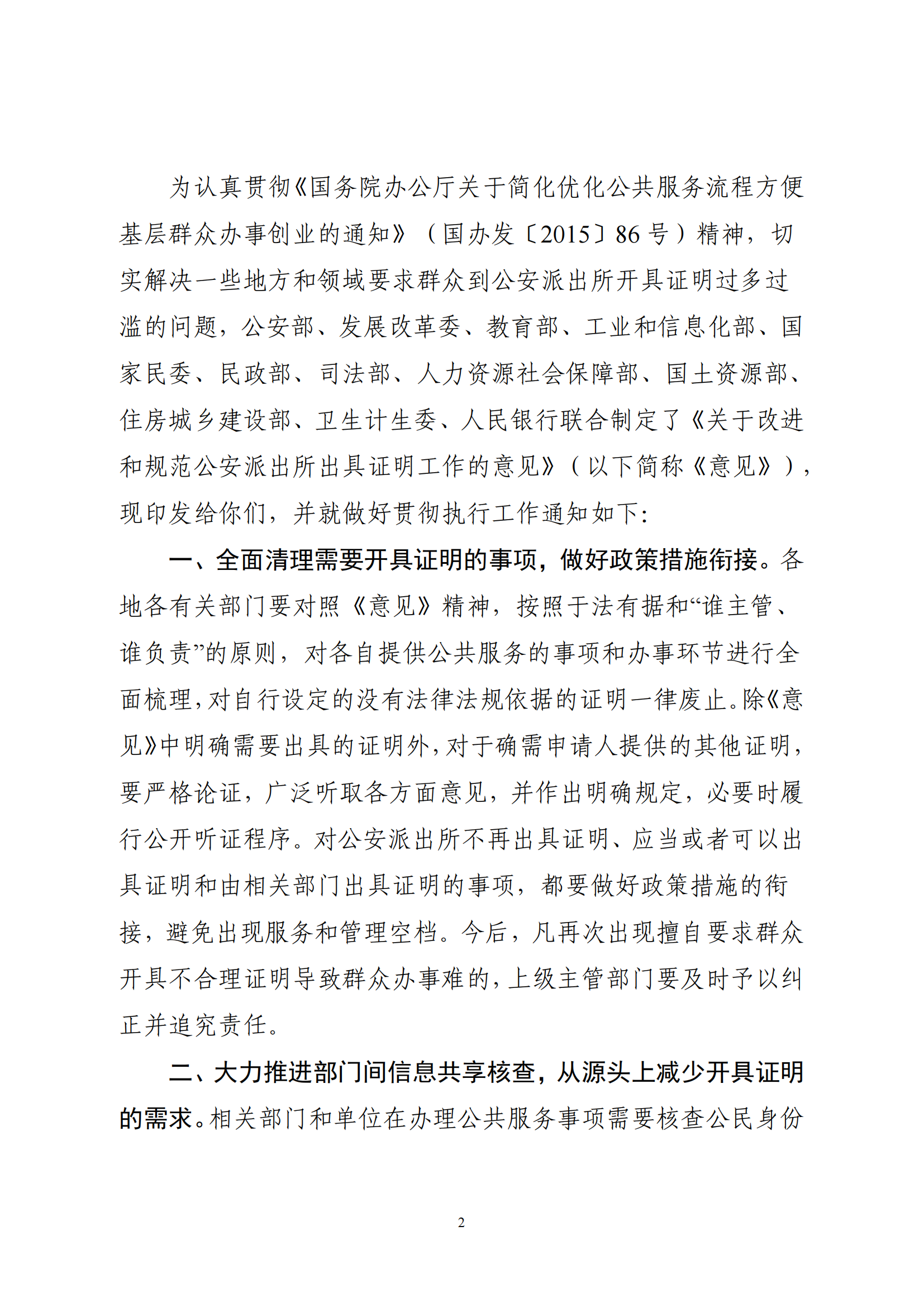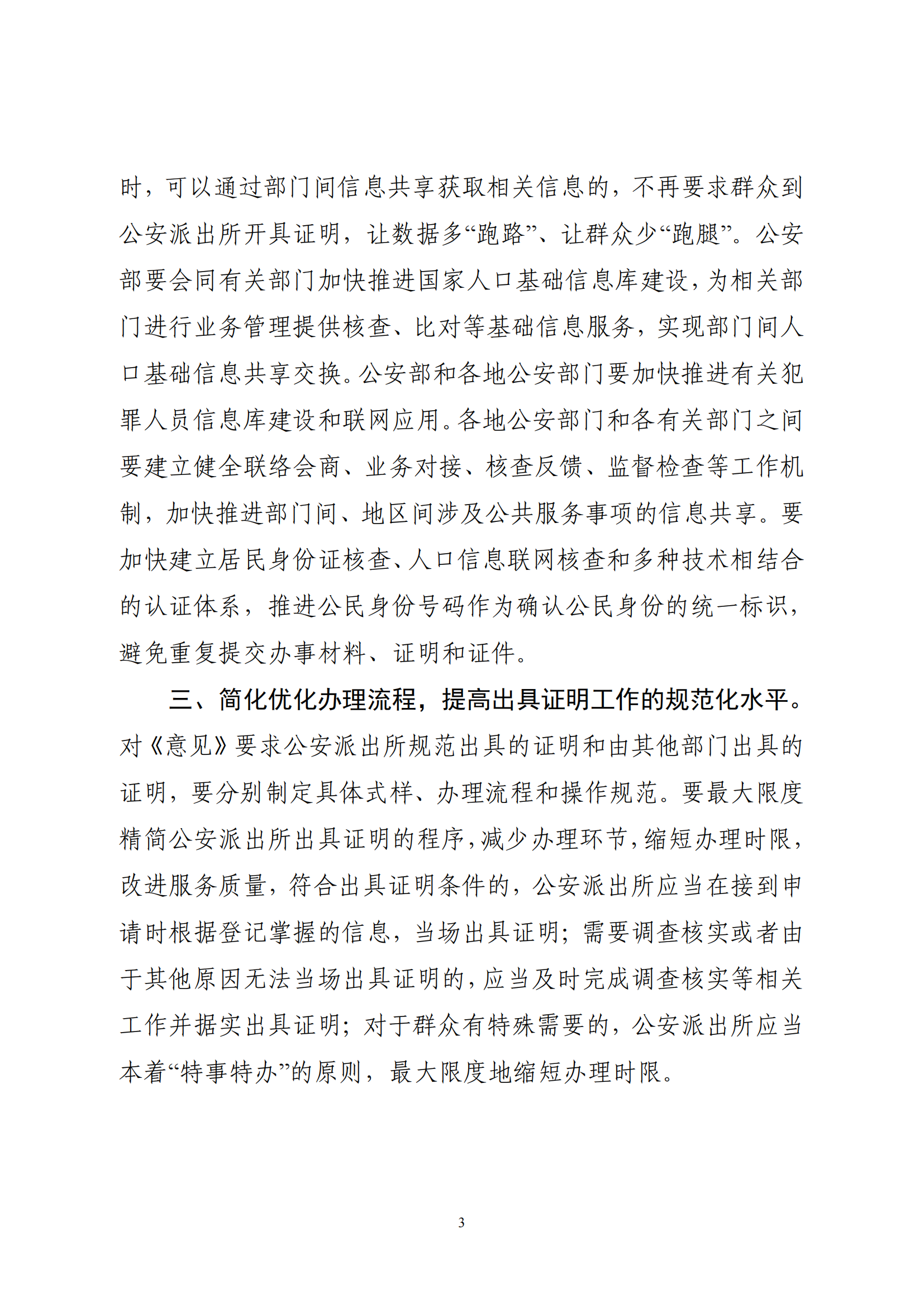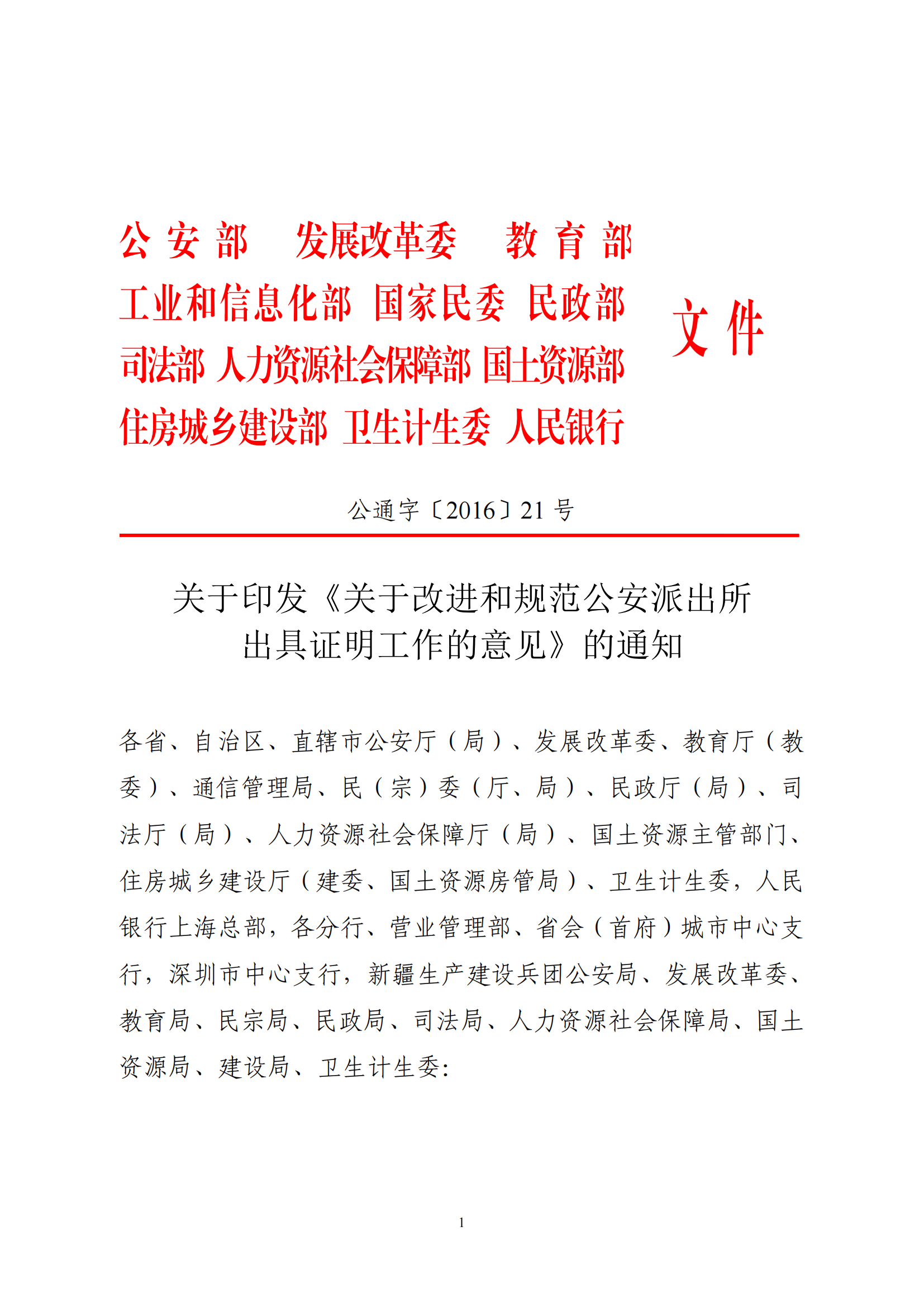 公安部等12部门关于印发《关于改进和规范公安派出所出具证明工作的意见》的通知