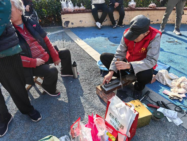 为切实解决居民日常生活中的实际需求,活动设置了多个便民服务摊位。便民维修区,来自各单位的志愿者组成维修队伍,免费为住户检修、维修各类小家电,用专业技能为居民排忧解难;生活惠民区,由青铁智管公司补贴差价推出的低价新鲜蔬菜、鸡蛋售卖摊位深受住户青睐,将实惠直接送到居民手中;爱心磨菜刀摊位前更是排起了长队,志愿者师傅凭借精湛的磨刀技艺,让居民家中的旧菜刀 “重焕锋芒”,赢得一致好评。