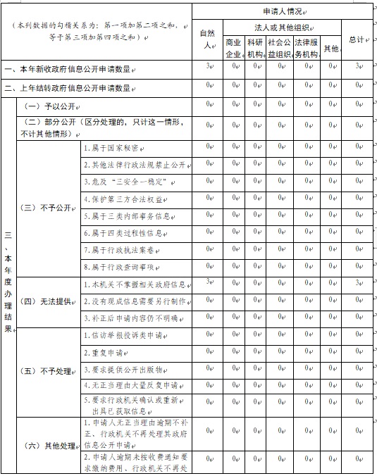 三、行政机关收到和处理政府信息公开申请情况