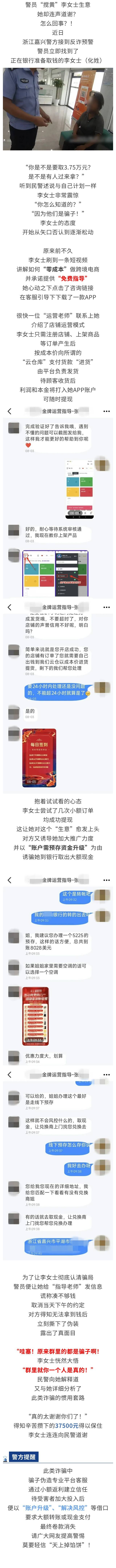 【反诈预警】女子跨境电商0成本开店 警员迅速止损37500元
