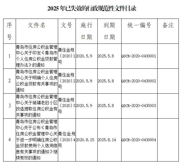 经对行政规范性文件进行清理,市住房公积金管理中心2025年已失效的行政规范性文件4件,现行有效的行政规范性文件5件。