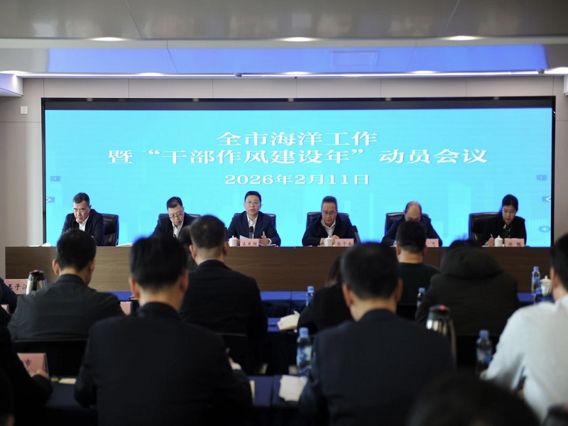 2月11日,全市海洋工作暨“干部作风建设年”动员会议召开。会议以习近平新时代中国特色社会主义思想为指导,按照中央经济工作会议、中央财经委第六次会议、省委、市委全会和经济工作会议决策部署,回顾总结2025年全市海洋工作,安排部署2026年工作任务,对开展“干部作风建设年”活动进行全面动员。会上,局长张子木传达了市委、市政府主要领导对全市海洋发展工作的批示精神,西海岸新区海洋发展局、即墨区海洋发展局、崂山区发展和改革局、蓝谷管理局作会议交流发言。局党组书记孟庆胜作了讲话。