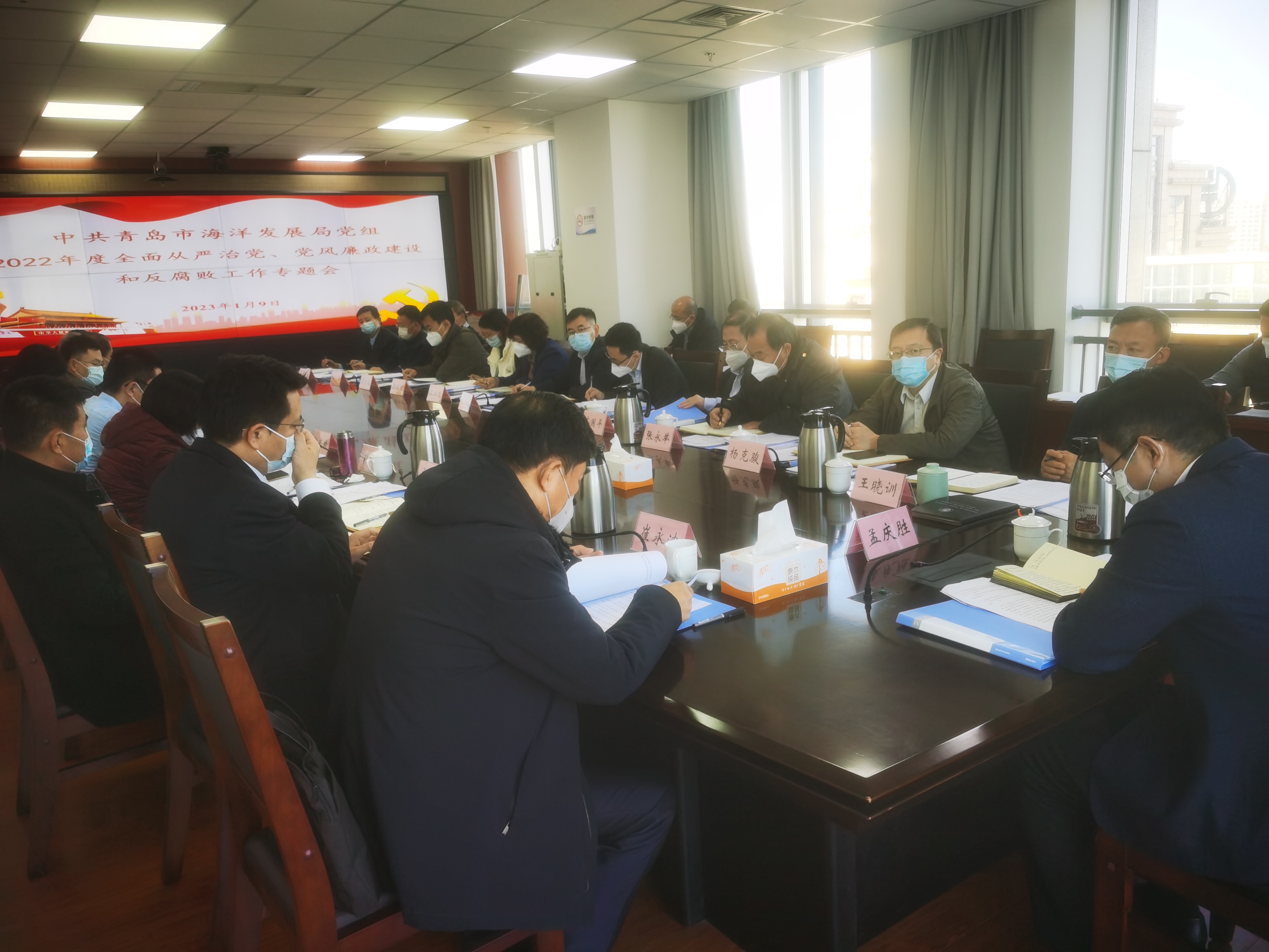 会上,局党组成员、副局长戚永战代表局党组通报了2022年度全面从严治党、党风廉政建设和反腐败工作情况、存在问题和下步打算。局党组成员围绕职责范围内管党治党和党风廉政建设情况、存在的问题和下步改进措施分别进行交流发言。市纪委监委派驻第十七纪检监察组崔永波对局党组2022年推动现代海洋产业提质增效取得的成绩给予充分肯定,同时指出抓基层党组织建设不够实等三个方面问题,并结合实际从持续深入学习贯彻党的二十大精神、切实扛牢全面从严治党责任、强化“一把手”监督、持续深化纠治“四风”问题等方面对下步工作提出建议。
