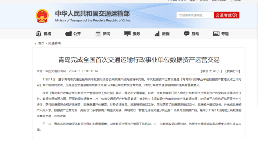 三是以资产化探索破局,激发数据价值“新动能”。会同市财政局、市大数据局开创性明确数据资产会计确认等审批流程与管理规范,构建符合会计准则要求、具有交通行业特色的数据资产全生命周期数据资产管理模式,成功跑出全国交通运输领域第一单数据资产运营交易。健全价值转化机制,联合头部科技企业、重点科研院所,建立“政产学研用”场景挖掘机制,孵化出“综合交通运行监测动态看板”等多个创新应用,推动“以数兴业”发展成果持续“落地生金”。