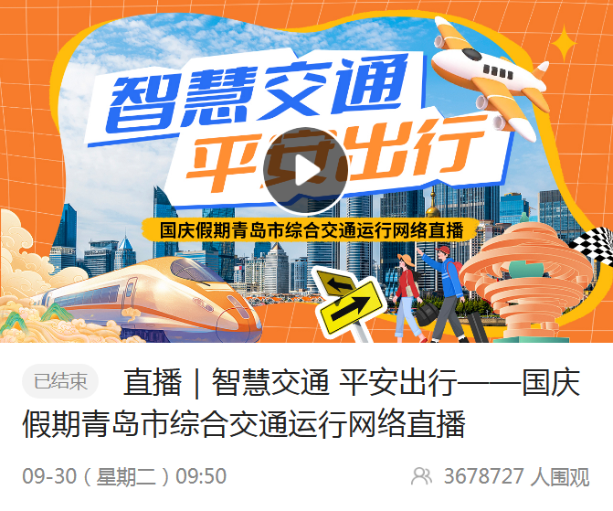 一是面向公众,拓展群众出行服务功能。针对群众对交通服务的新需求,打造一体化、多层次特色信息服务产品,在全省率先建立地级市交通出行服务平台和“爱山东”交通板块,组织“数字主播+真人主播”交通直播15次,总观看人数超4100万。开放打造“交通+”服务模式,“交通+旅游”实现地铁沿线30余个景区数字化导览全覆盖。