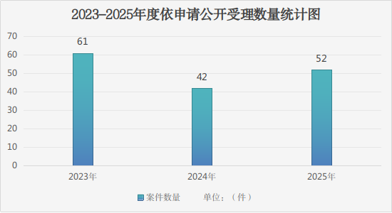 (三)依申请公开方面。进一步完善依申请公开办理系统,制定答复规范,加强主动沟通,依托市政府信息公开平台优化依申请公开工作流程,耐心接待现场申请群众,主动与申请事项较多、内容不清晰的申请人电话沟通,分类梳理申请公开的内容,了解申请人的意图想法,对于不予受理或者应当通过其他途径获取信息的,认真解释相关法律规定,取得申请人理解。热情接待现场查看信息群众,耐心解释申请事项依据。2025年新收到依申请公开50件,其中经电话沟通后,申请人撤回申请1件;本年度按期办结件43;转下年度继续办理6件。