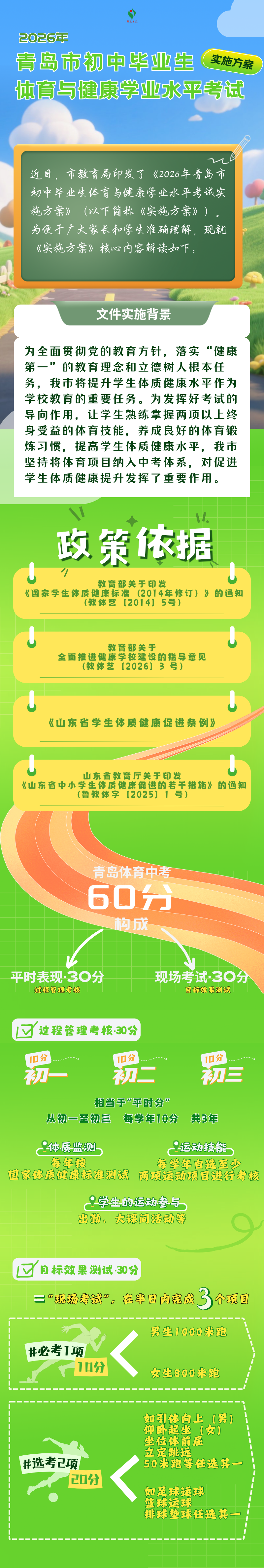 【图片解读】《2026年青岛市初中毕业生体育与健康学业水平考试实施方案》政策解读